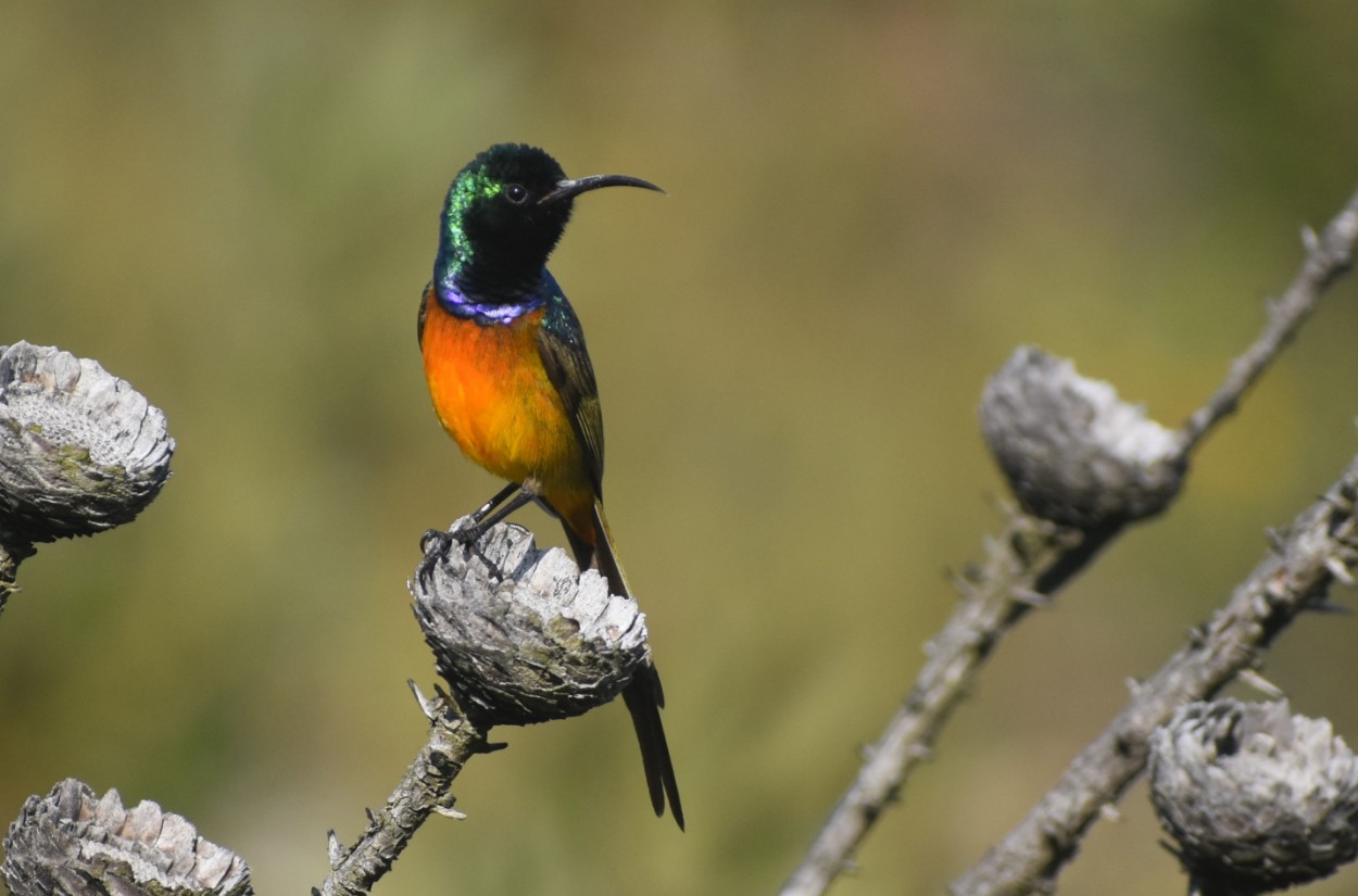 Birding is one of our richest attractions having over 60 registered species on the property with life-timers such as a breeding pair of the Cape Eagle Owl with frequent sightings and heard from the cabins on an evening basis thanks to the natural amphitheater design of the mountain. Throughout the fynbos gardens you will find a multitude of fynbos birds that can be viewed and photographed from the balcony of your cabin with Sugarbirds fluttering around the proteas and different Canarie species darting about the pine tree canopy above. Red Necked Spurfowls roost along the fringes of the fynbos gardens scratching the fertile soil for nutritious snacks.