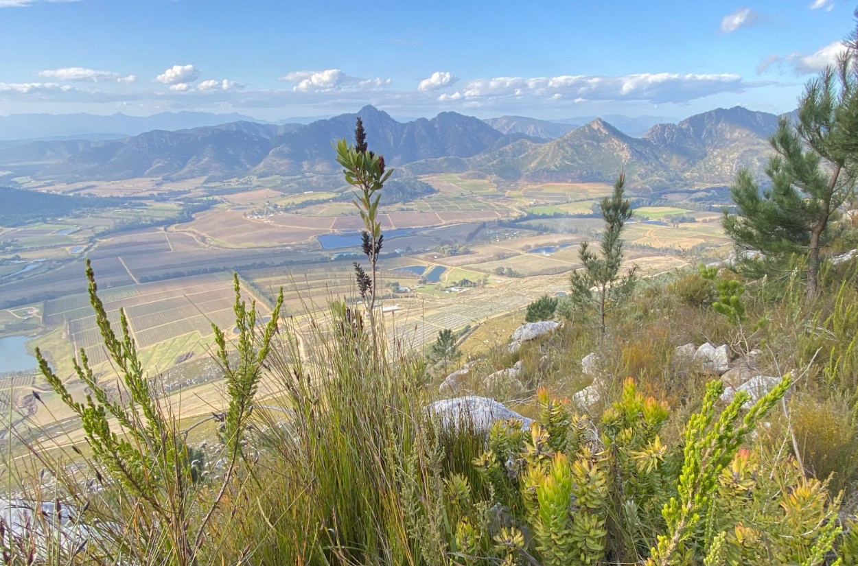 The “Owl Trail” makes for stunning views of the Hops Valley and the Klein Karoo with the Swartberg Mountain Range toward the North and the Indian Ocean on the South. It is a more challenging hike with an elevation of 480 meters over a distance of 4km reaching the summit at 1155 meters above sea level. Along this trail you closely pass by the Cape Eagle Owl breeding pair with Klipspringer and Mountain Duiker frequently seen as you progress up the mountain. At a distance of 1.25km you have reached the first “summit “and viewpoint with a pull-up bar for those keen to show off their skill and stamina.